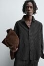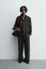 BROWN STRIPED FLOWING SHIRT AND TROUSERS SET