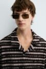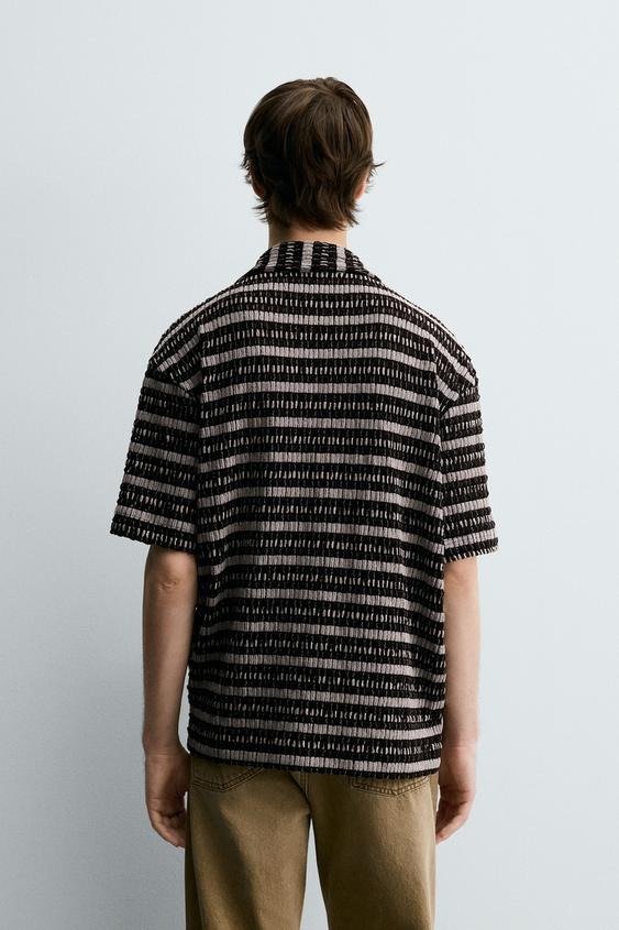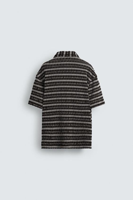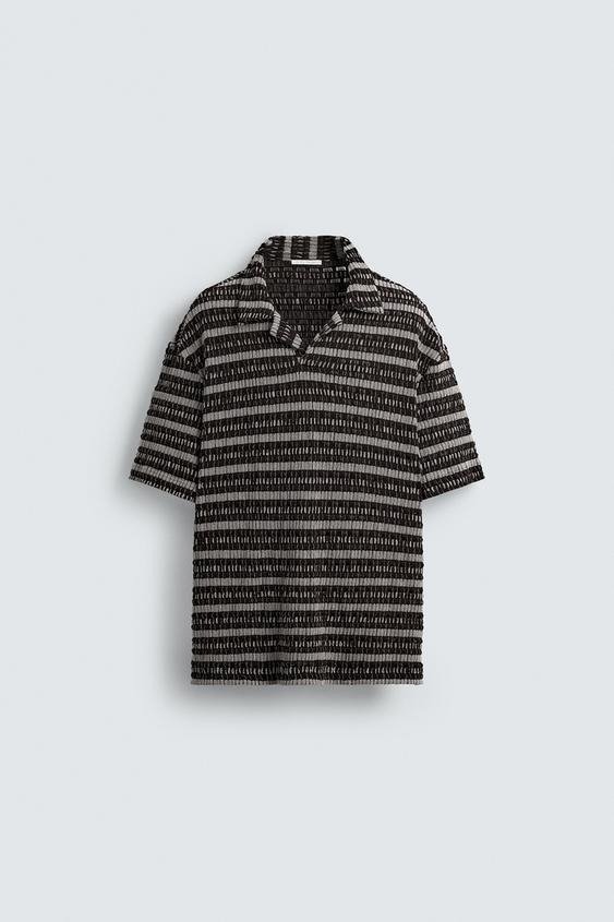 Relaxed fit polo shirt made in open cutwork fabric. Featuring a shirt collar with a front opening and short sleeves. Hem with side vents.