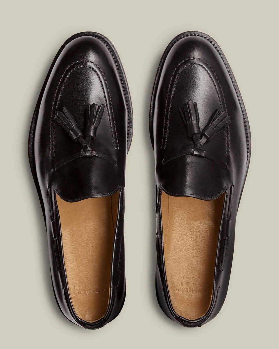 Crafted in sleek black leather, finished with signature tassel detail — effortless sophistication in every step.