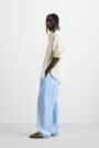 SKY-BLUE STRIPED TEXTURED TROUSERS