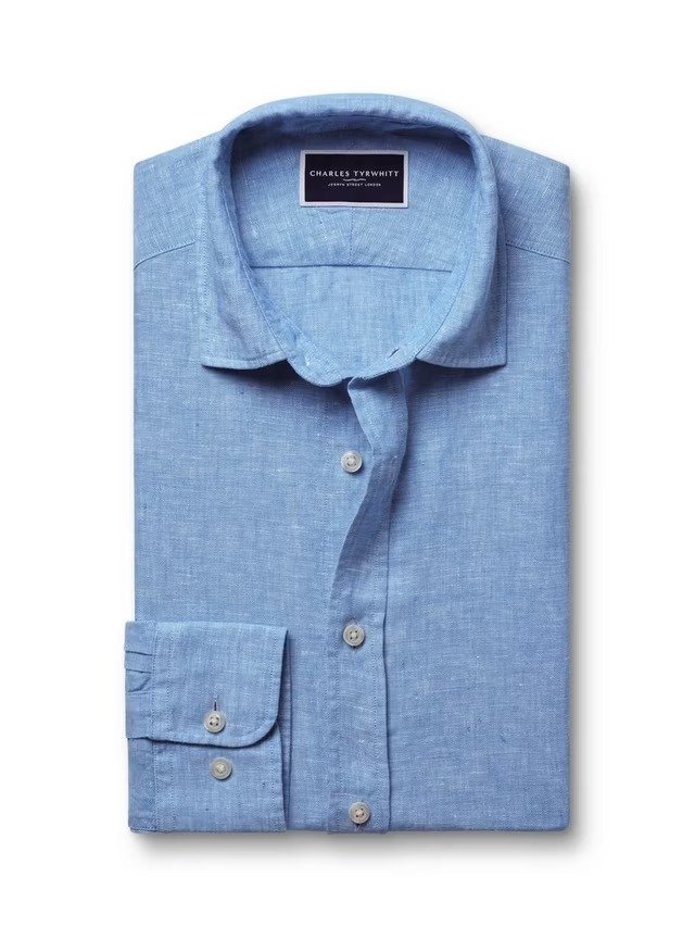 SLIM FIT PURE LINEN SHIRT- OCEAN BLUE