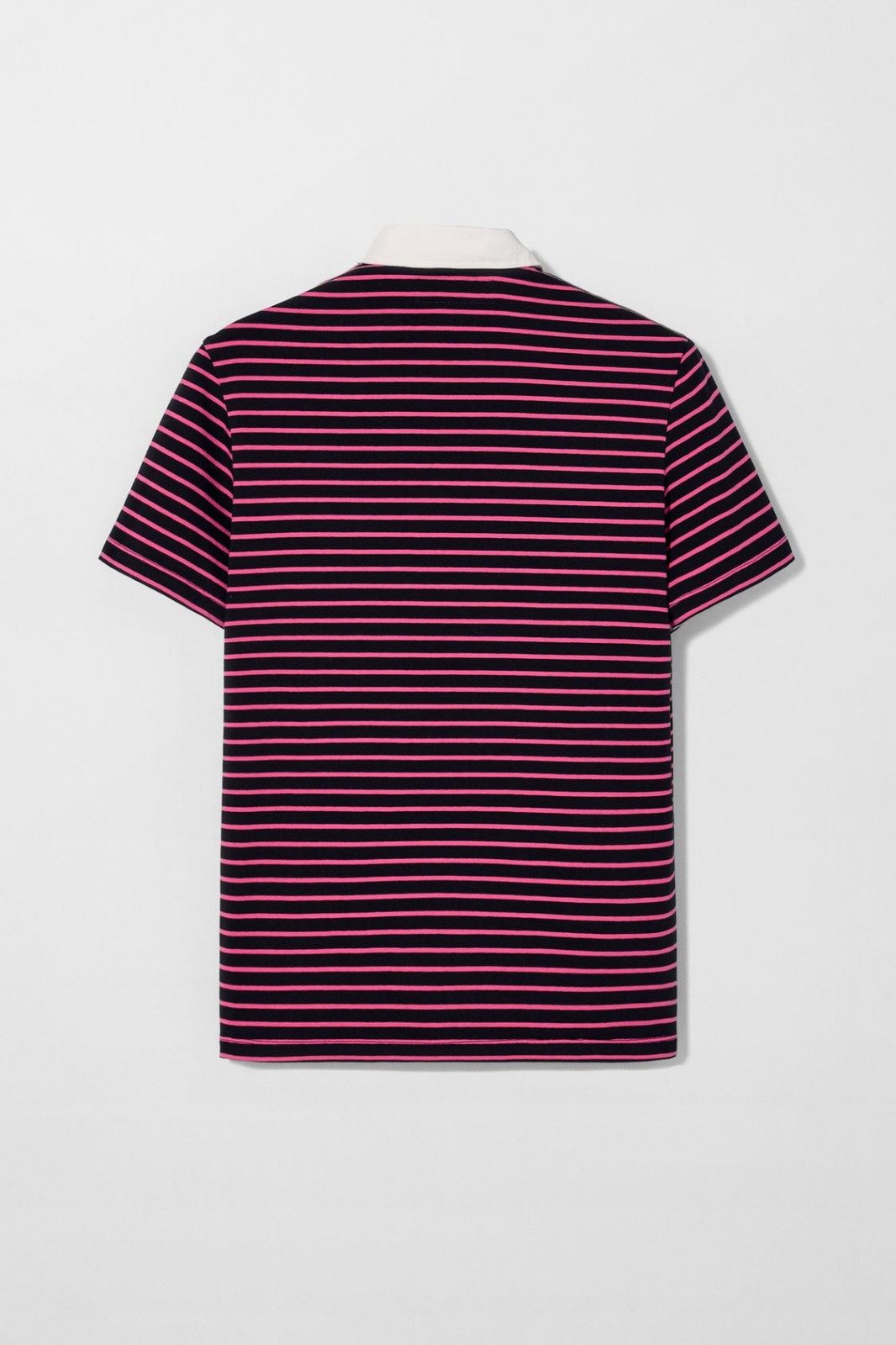 Slim fit polo shirt made of stretchy cotton fabric. Button-down collar with a button-up front in a contrasting fabric. Short sleeves. Hem with side vents.